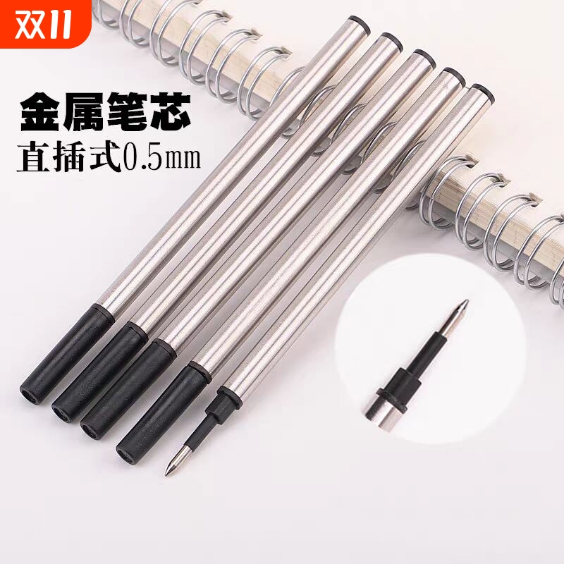 通用宝珠笔笔芯金属签字笔水笔芯替换蓝黑色黑色红色0.5mm水芯直