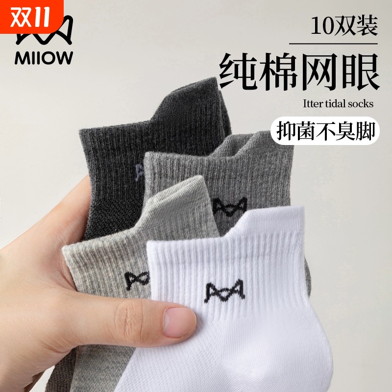猫人袜子男士短袜纯棉吸汗抗菌防臭网眼短袜子新款中筒不臭脚后跟
