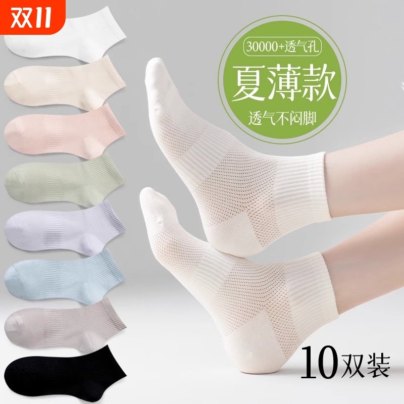 网眼透气短袜子女夏季薄款纯棉