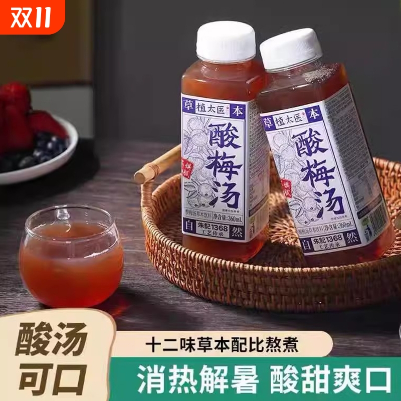 酸梅汤解腻冰镇酸梅汁植物草本饮品360ml东济堂植太医饮料瓶装