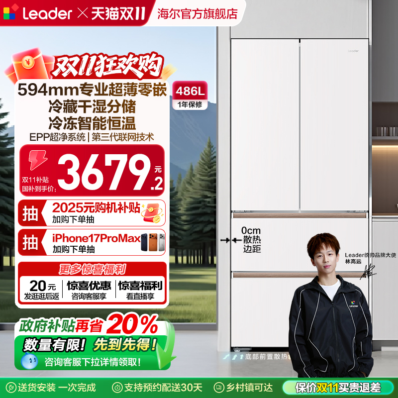 海尔出品双系统循环575法式多开门一级能效家用大容量统帅电冰箱