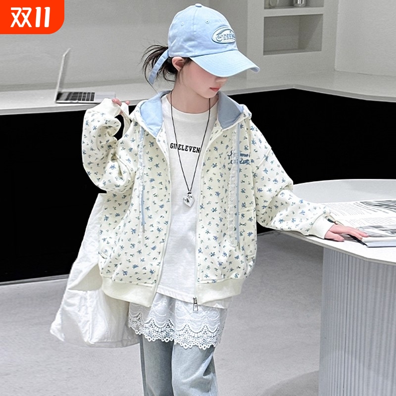 女童外套春秋款2025新款女大童学生春装上衣儿童洋气韩版碎花开衫