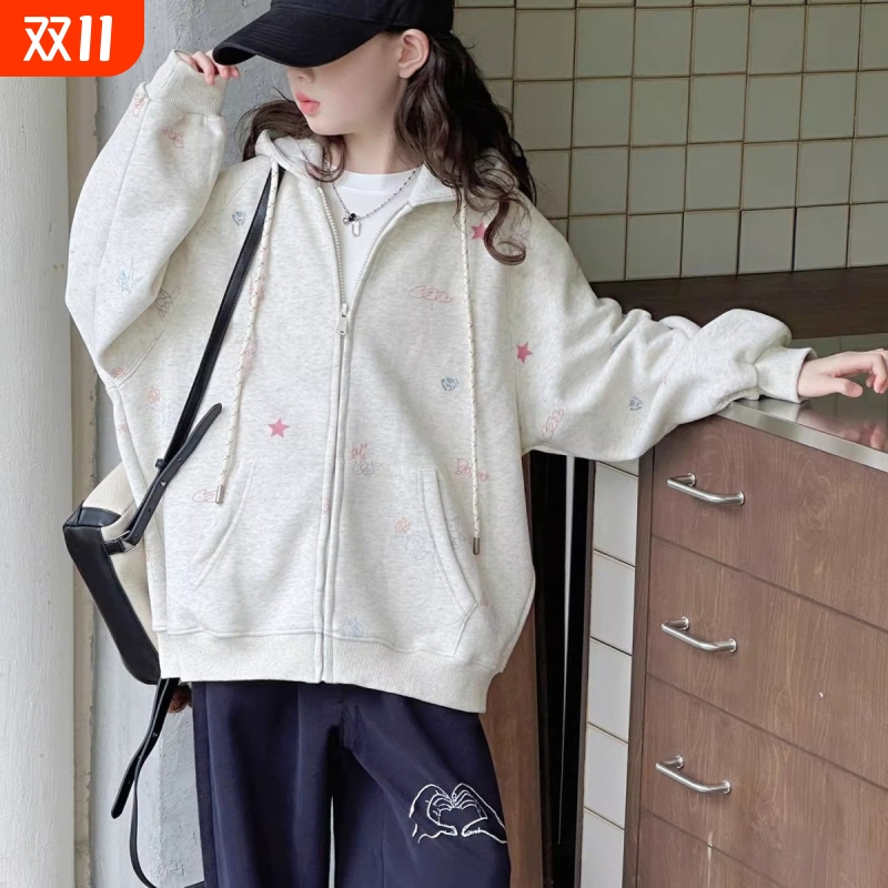 女童外套春秋装2025新款儿童洋气超好看开衫卫衣初中学生大童帅气