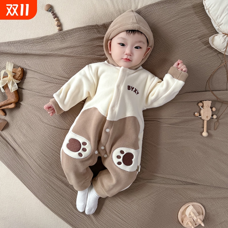 新生婴儿衣服夹棉连体衣摇粒绒宝宝保暖加厚卡通爬服洋气可爱棉服