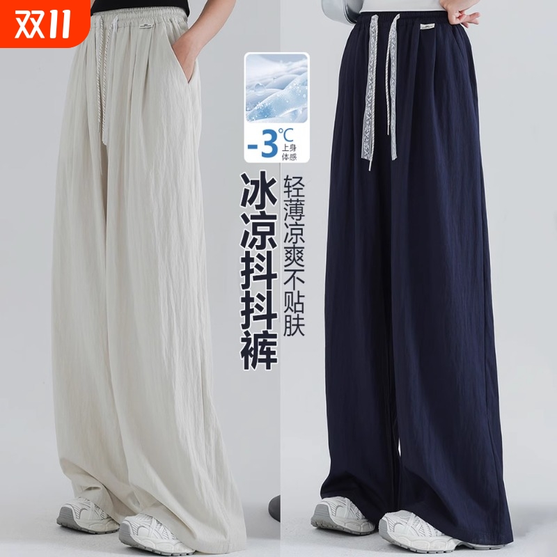 女童裤子夏薄款防蚊裤2025新款洋气初中生宽松冰丝裤女大童阔腿裤