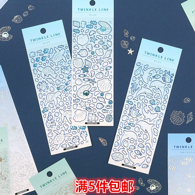 韩国wannathis海洋生物可爱烫金烫银闪烁线条装饰指甲贴纸手