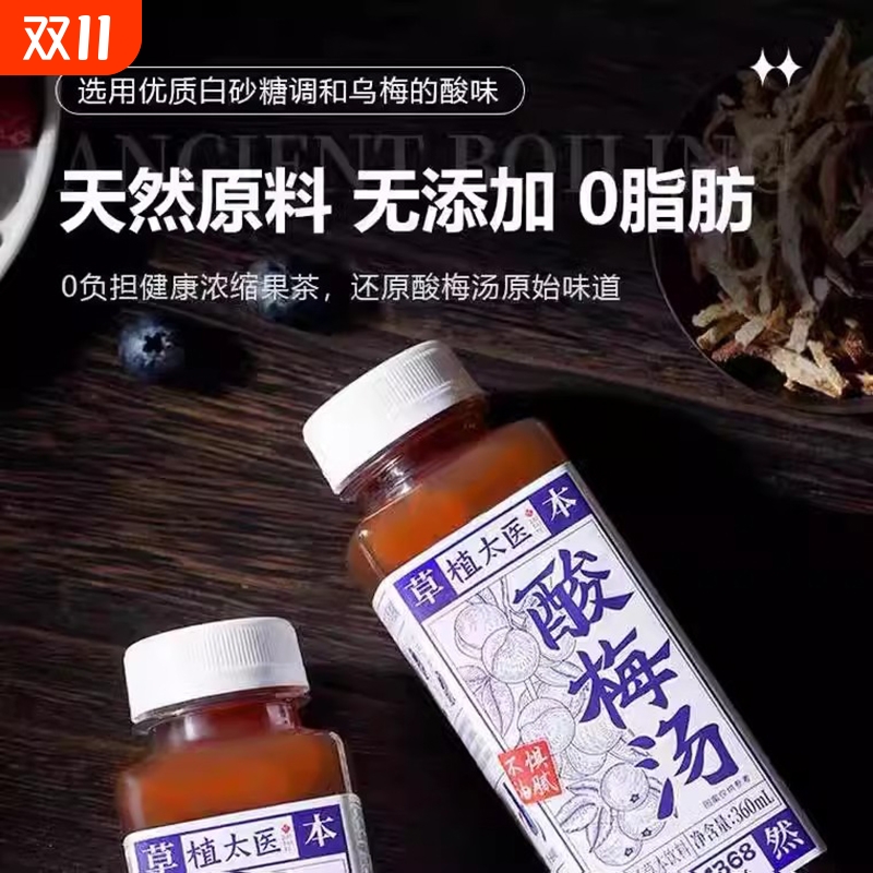 酸梅汤0脂肪清爽解腻冰镇酸梅汁植物草本饮品东济堂植太医饮料