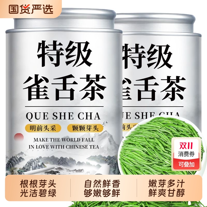 雀舌绿茶2025新茶叶明前特级春茶浓香型湄潭毛尖嫩芽碧螺春罐装
