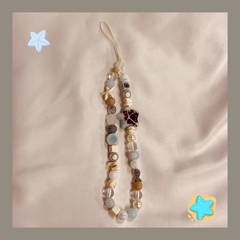 ins海风星星贝壳手机链条手机链清新ccd挂绳diy挂饰相机蓝色