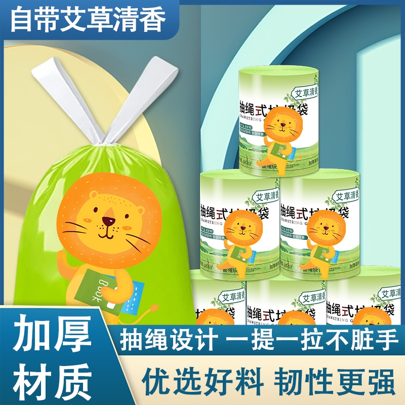 艾草香氛加厚抽绳家用大号垃圾袋手提式收口厨房卫生间不脏手清洁