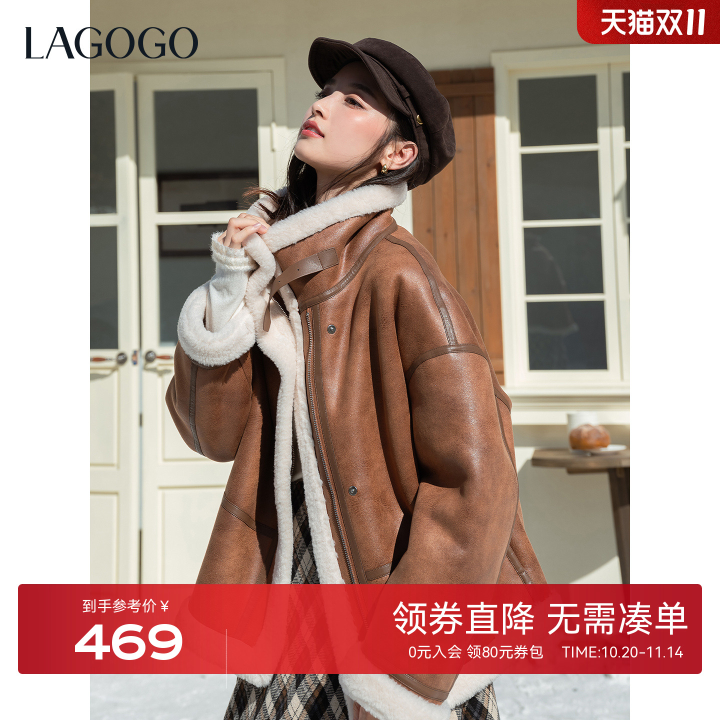 LAGOGO拉谷谷仿羊羔毛温暖外套