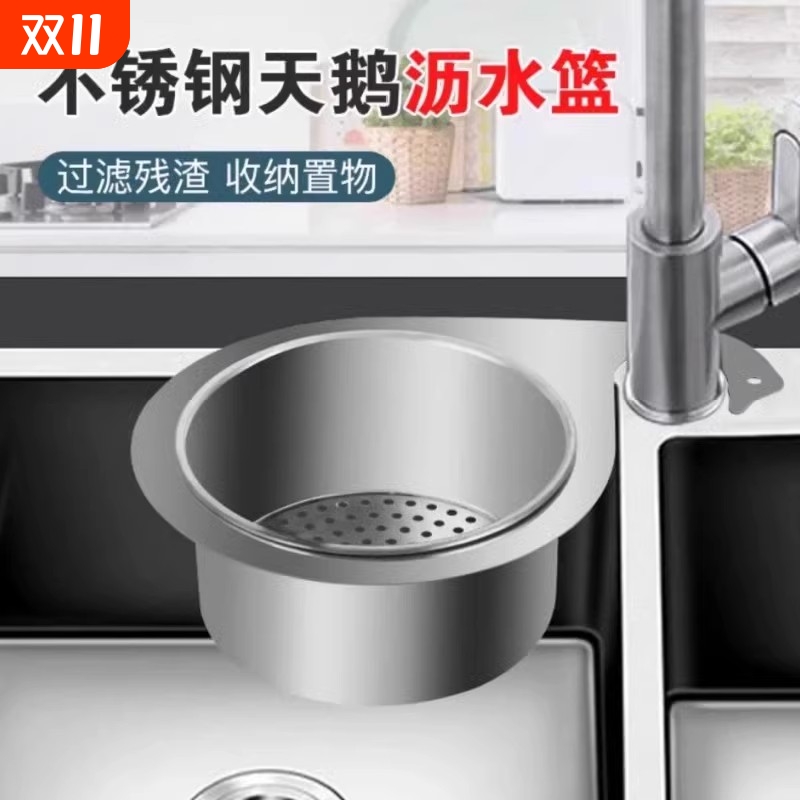 不锈钢天鹅沥水篮厨房水槽专用挂式架干湿分离垃圾洗菜过滤篮