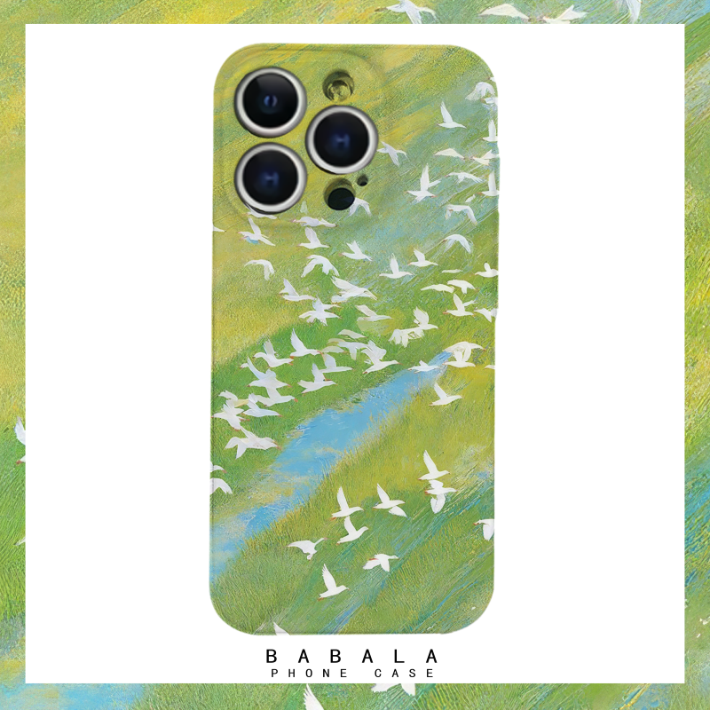 清新绿色湿地飞翔海鸥菲林二合一手机壳适用苹果17nova14华为