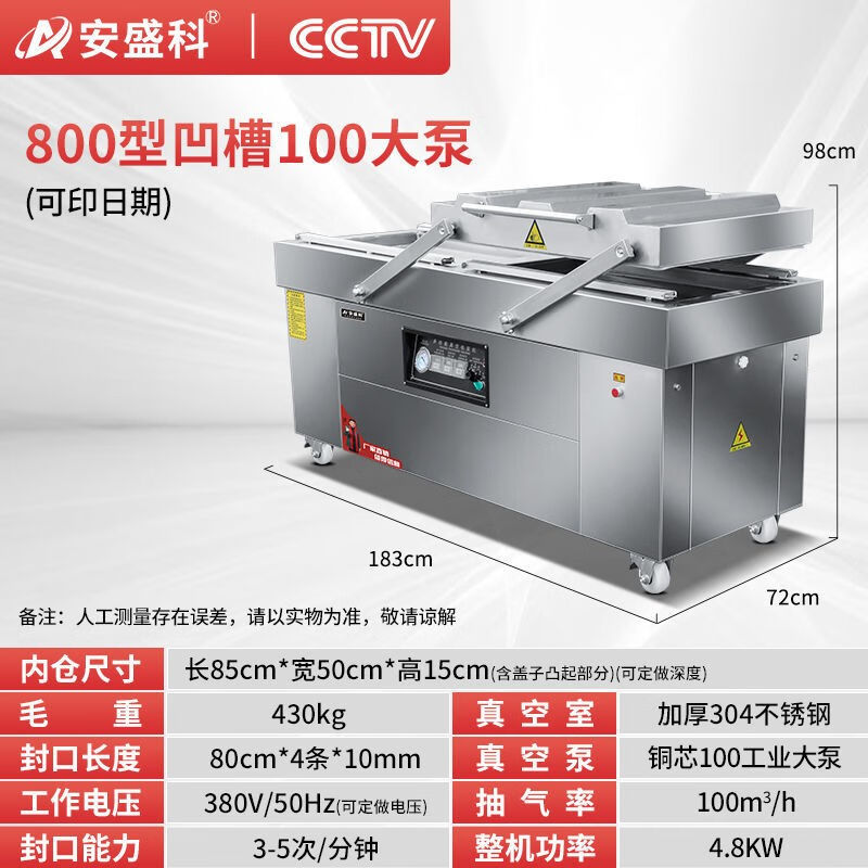 安盛科双室真空包装机商用全自动抽真空封口机大型不锈钢干湿两用