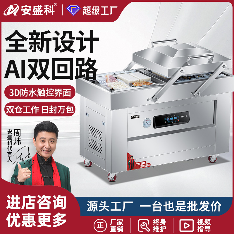 安盛科双室真空机封口机大型包装机商用全自动打包机食品干湿两用