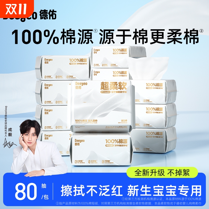 德佑婴儿棉源柔巾干湿两用擦脸巾一次性洗脸巾80抽*1包