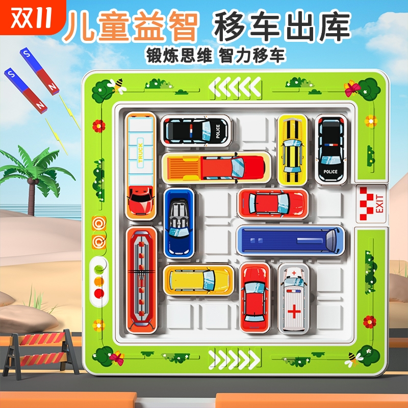 磁性汽车华容道益智解题玩具