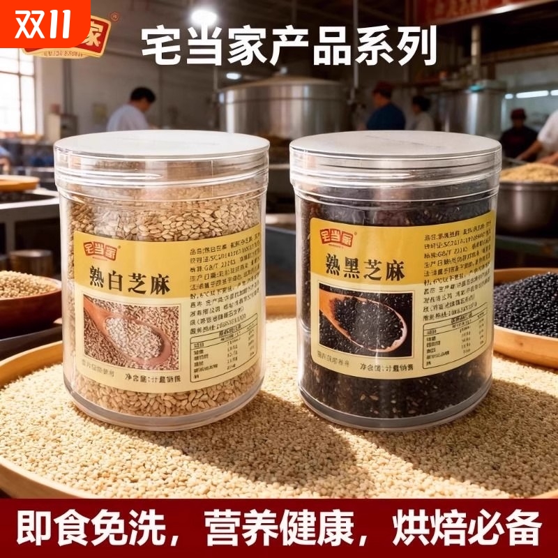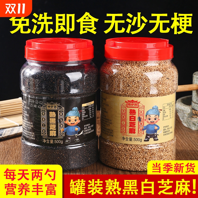 熟黑芝麻白芝麻罐装免洗即食无沙当季新货现炒芝麻粒烧烤调味蘸料