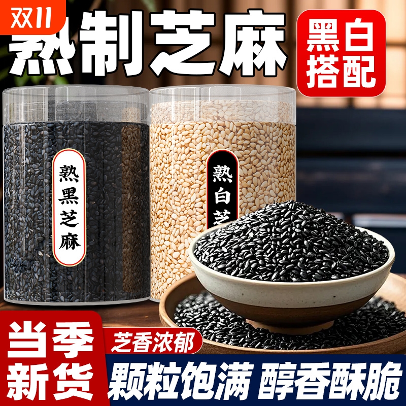 炒熟白芝麻熟黑芝麻颗粒饱满黑白芝麻细选免洗干净带皮无沙炒制