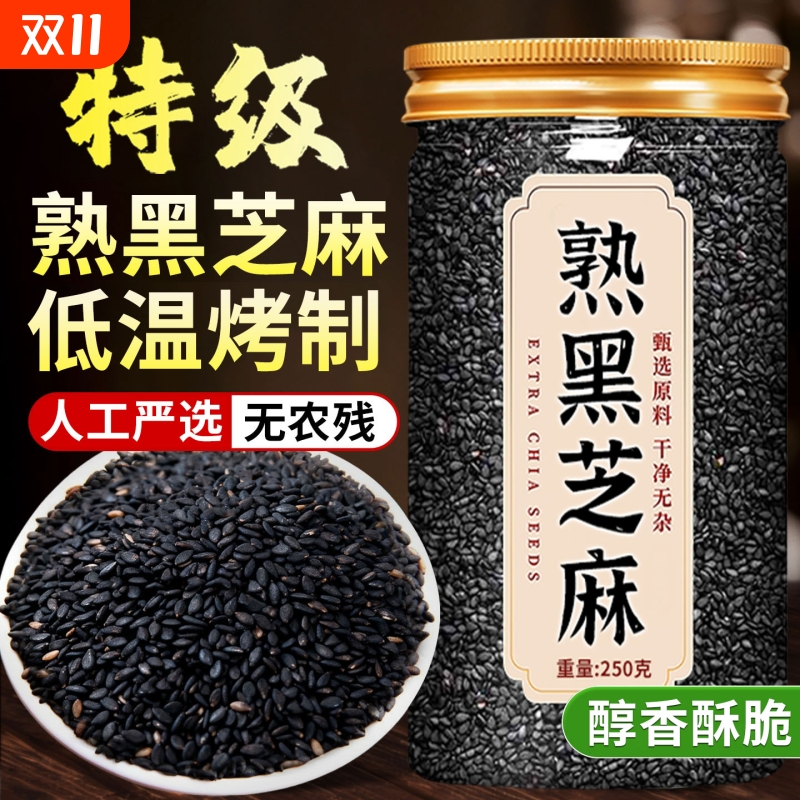 黑芝麻炒熟黑白芝麻豆浆即食新货熟芝麻粒商用官方旗舰店新鲜烘焙
