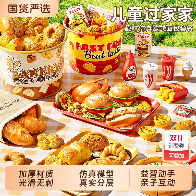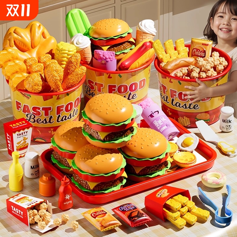 儿童益智玩具过家家快餐汉堡女孩生日礼物披萨套餐男仿真炸鸡薯条