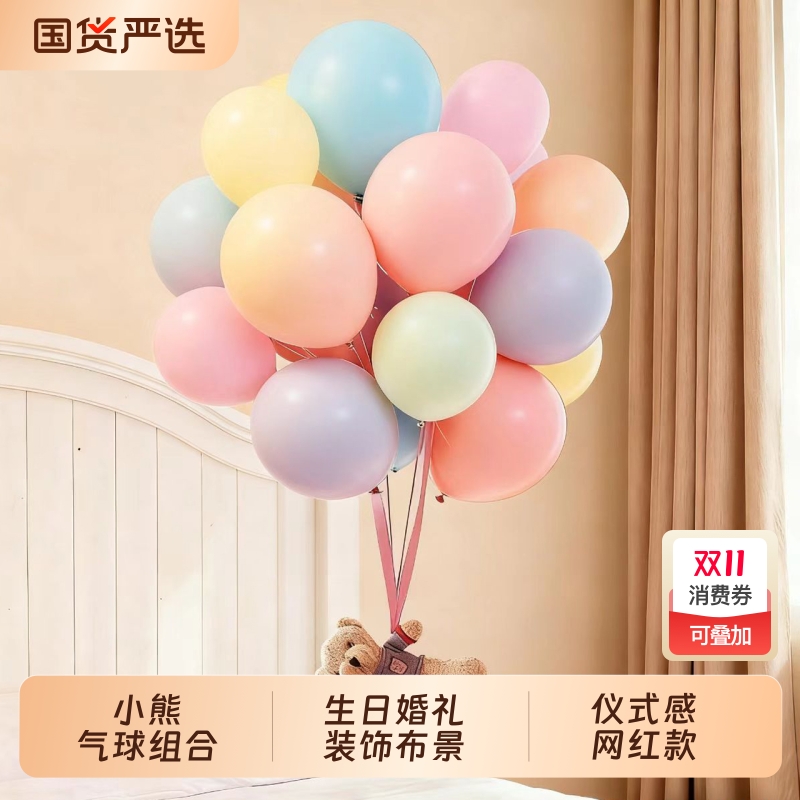 飘空小熊热气球造型婚礼开业橱窗男女周岁生日布置装饰室内仪式感