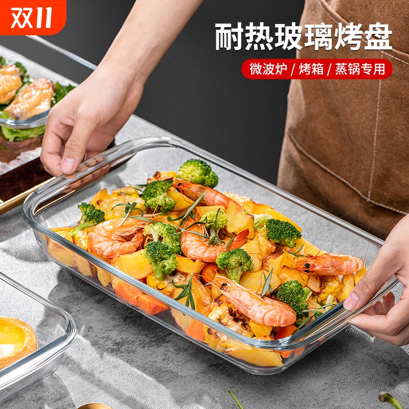 玻璃烤盘微波炉加热专用器皿蒸鱼捞汁小海鲜蒸盘餐具长方形盘子