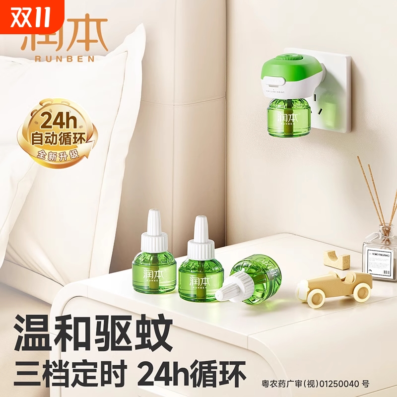 润本电蚊香液体驱蚊无味插儿童宝宝驱蚊液家用补充液电热蚊香正品