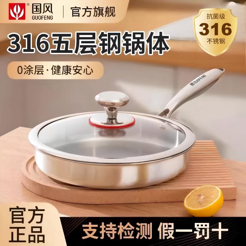 304不锈钢煎锅无涂层不粘锅