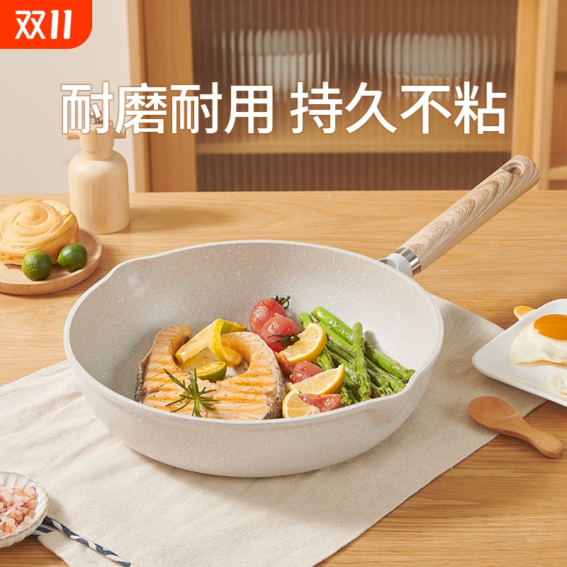 麦饭石平底锅不粘锅家用炒锅牛排煎锅煎蛋饼油炸电磁炉燃气灶专用