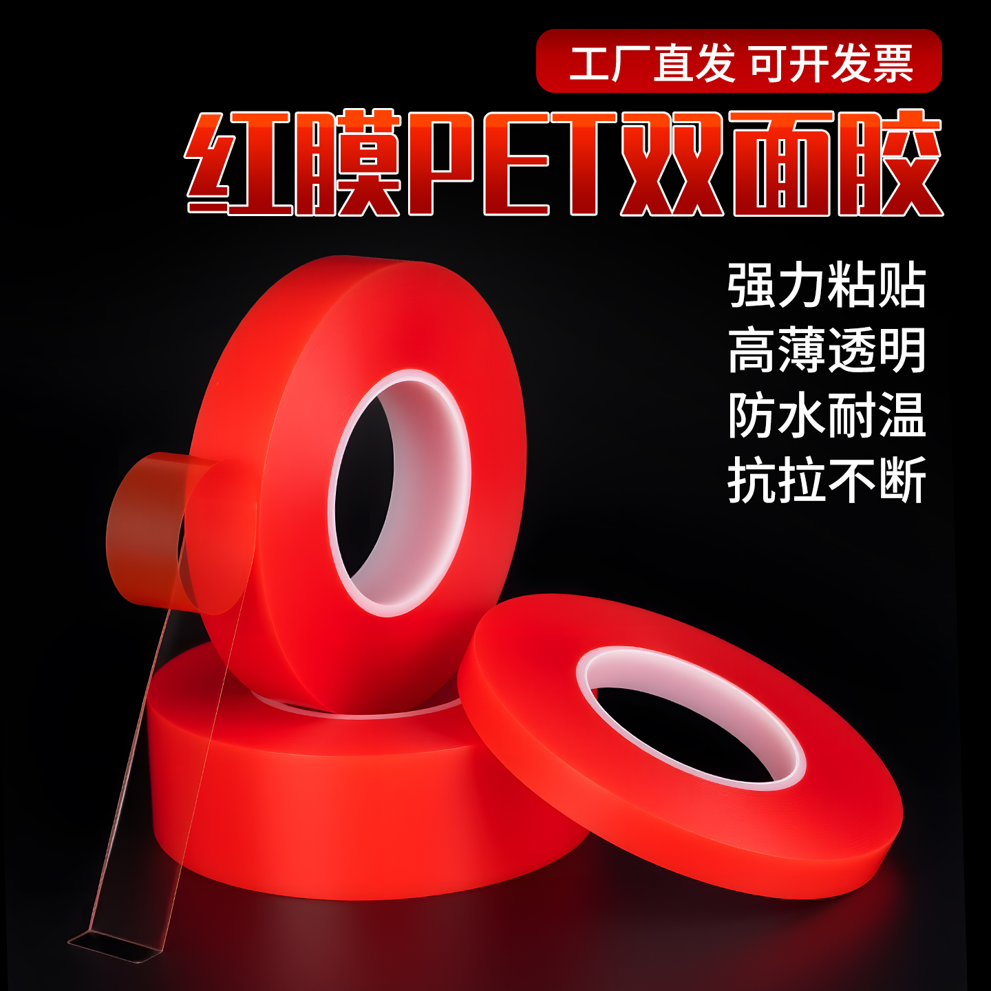 双面胶超粘7965透明PET强力高粘度超薄透明无痕耐高温红膜PE