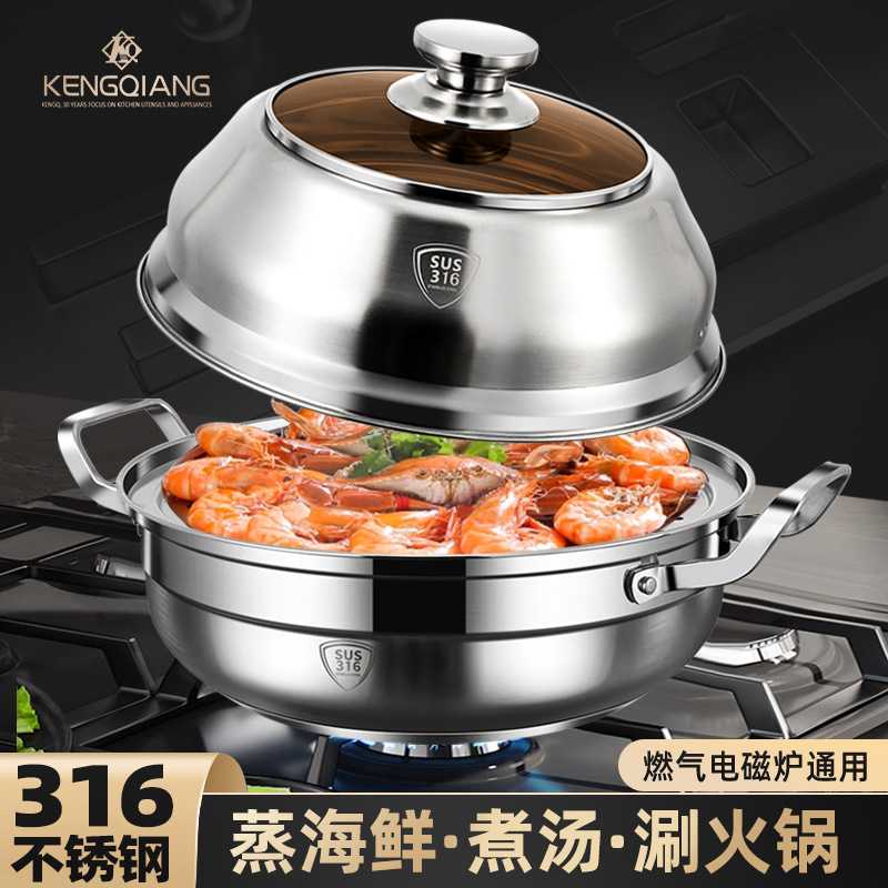 海鲜蒸汽锅316不锈钢家用蒸煮炖汤锅蒸海鲜蒸锅商用桑拿鸡锅火锅