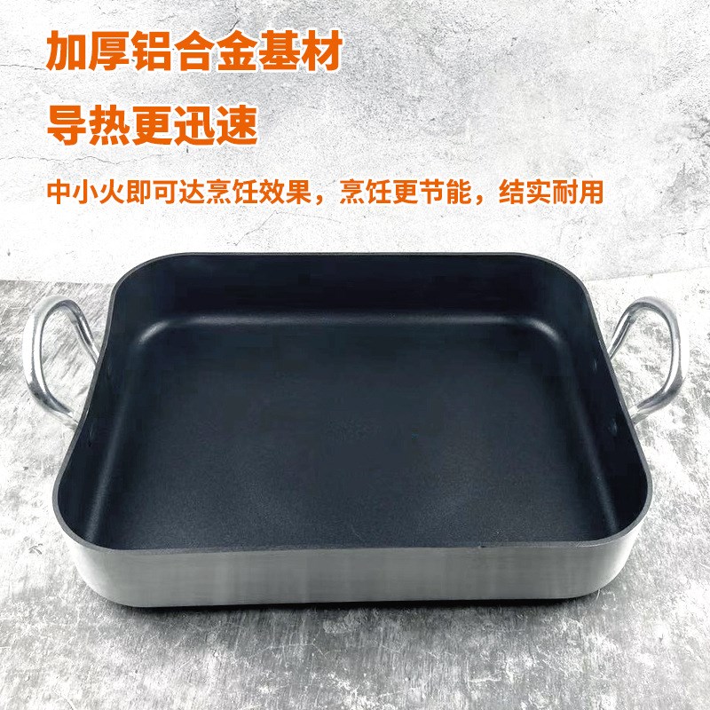 长方形双耳不粘煎锅烧烤鱼盘煮肉海鲜大咖拼盘平底烙饼煎蛋锅商用