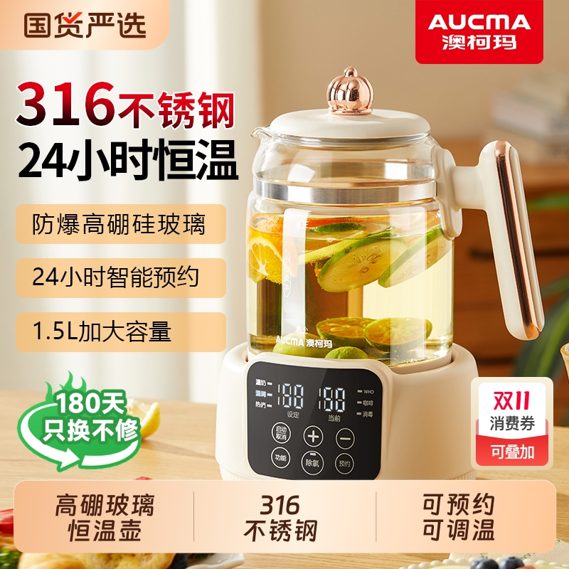 澳柯玛玻璃烧水壶智能恒温小型办公室煮花茶果电热水壶家用可调温