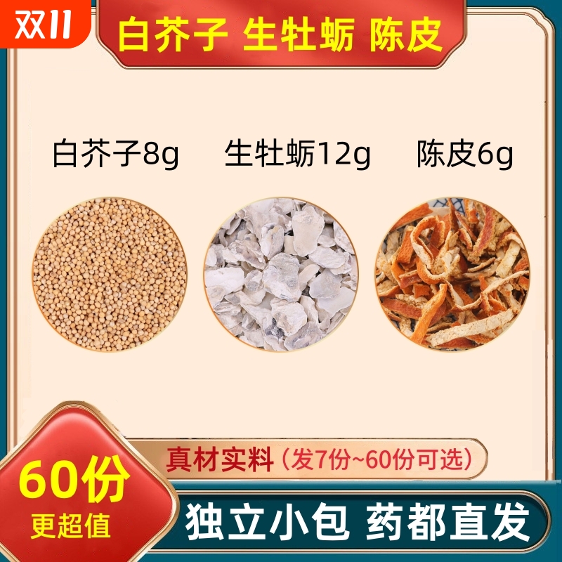 白芥子8g生牡蛎12g陈皮6克组合装的与白介子橘皮独立包装药材滋