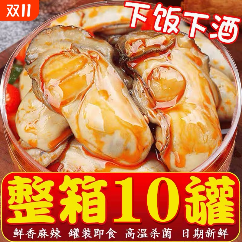 蒜蓉生蚝罐头即食麻辣生蚝肉新鲜海鲜熟食罐装小吃零食下饭菜鲜活