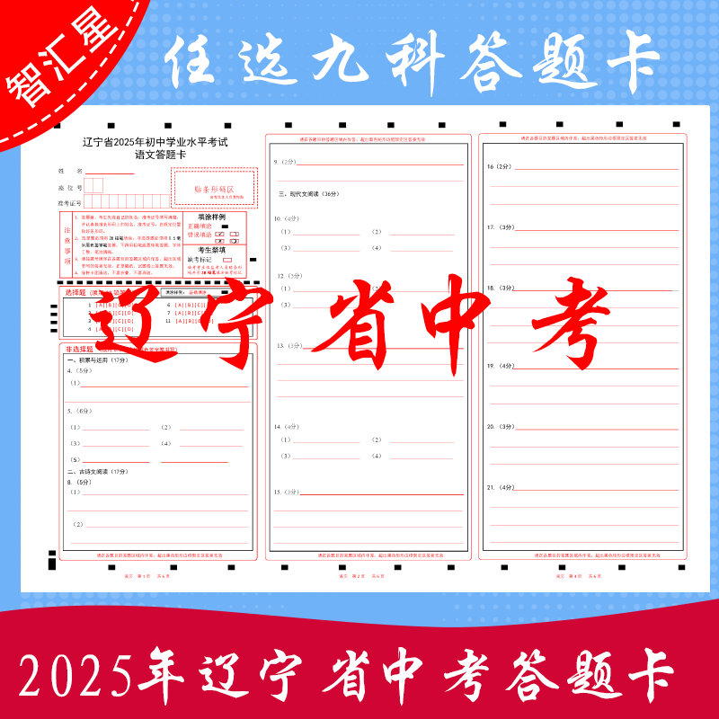 辽宁中考语数英物化道法史地生答题卡作文纸试卷模拟学业水平考试初中