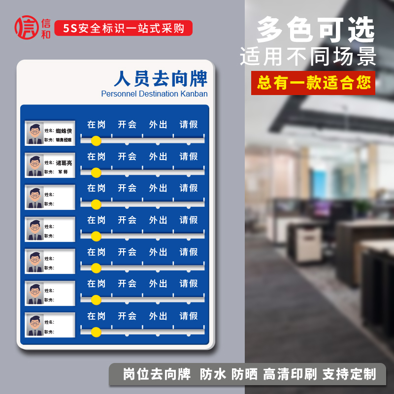 压克力人员去向牌定制照片姓名可更换员工岗位牌工作在岗外E出状