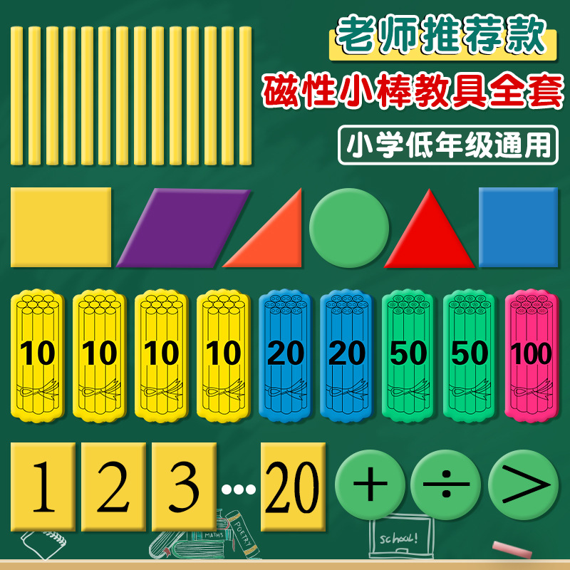 磁性学具盒磁性计数棒捆状片套装正长方形三角形圆平行四边形教具