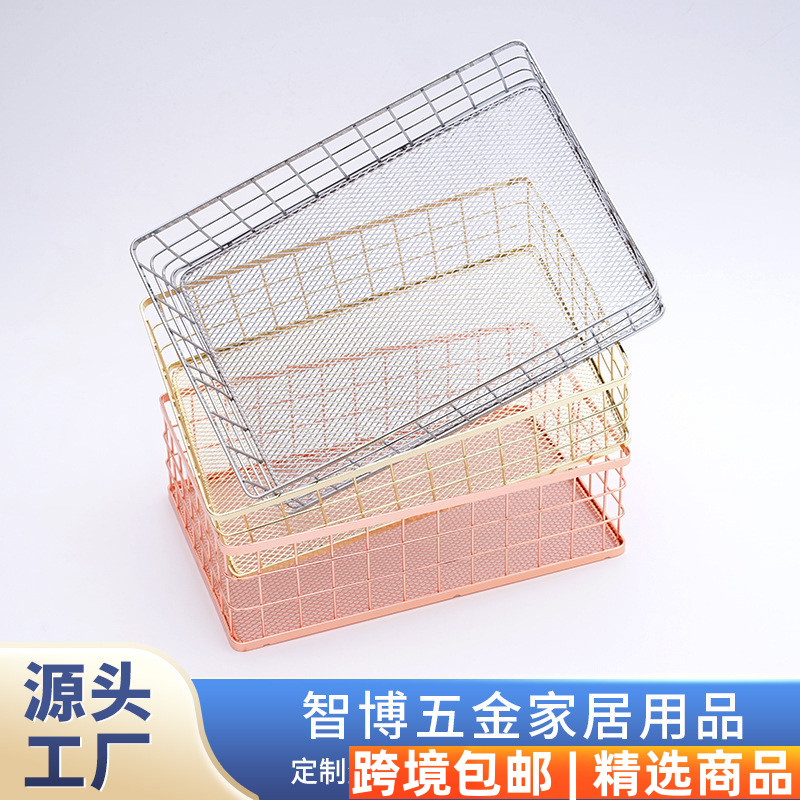 北欧风铁艺家居置物篮化状品收纳盒桌面杂物储物篮零食收纳筐