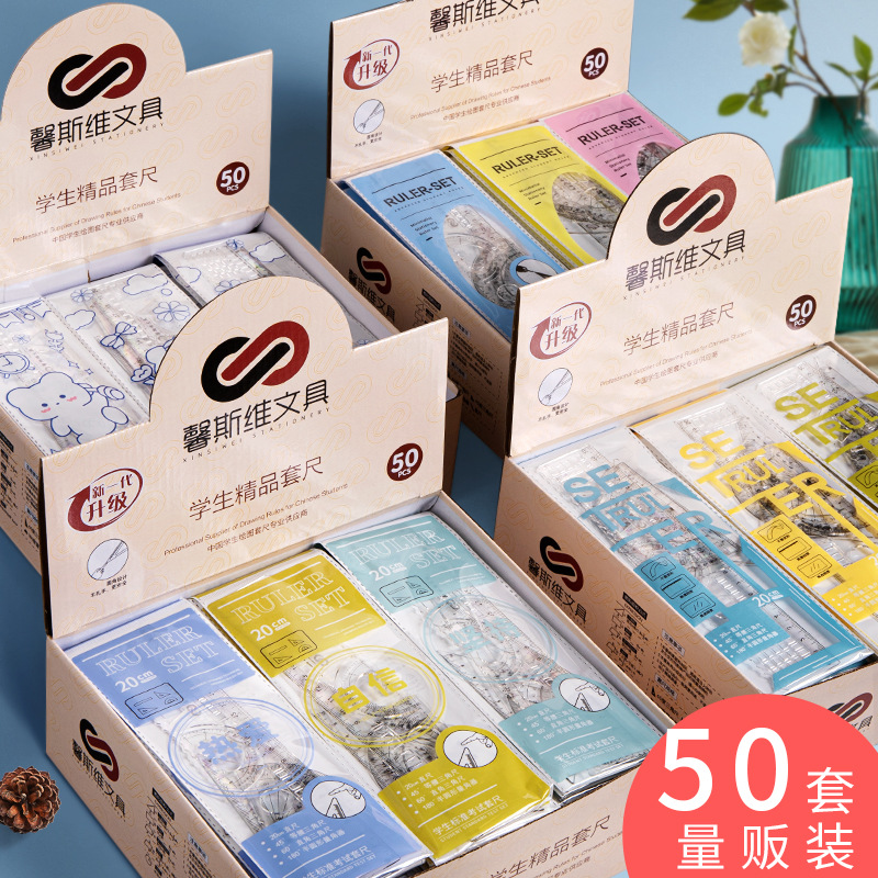 套尺学生绘图套装尺20cm简约透明四件套尺子学习文具用品现货