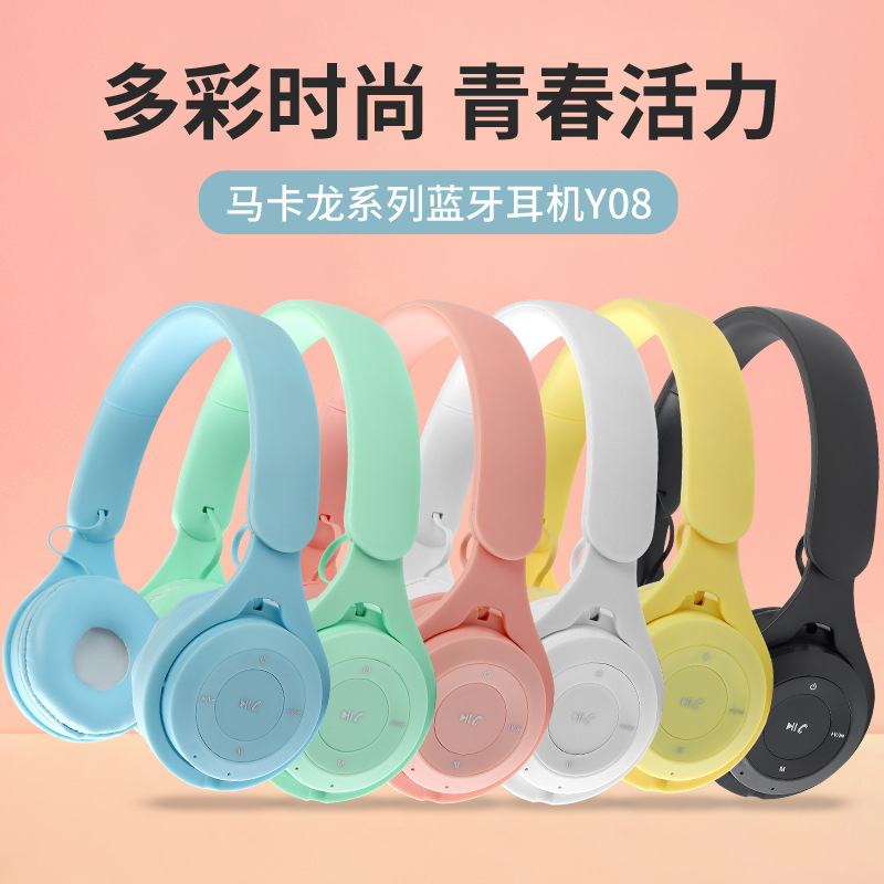 跨境新款Y08马卡龙头戴式耳机学生小清新无线蓝牙耳机长续航现货