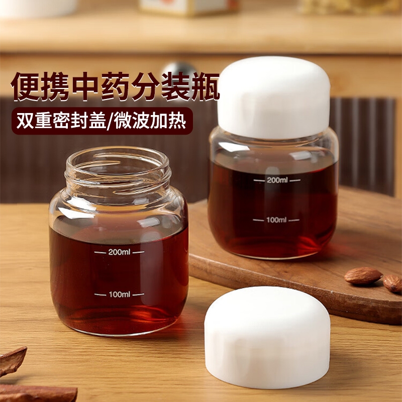 中药分装瓶喝专用杯玻璃瓶可加热杯储存罐便携密封罐刻度药瓶防烫