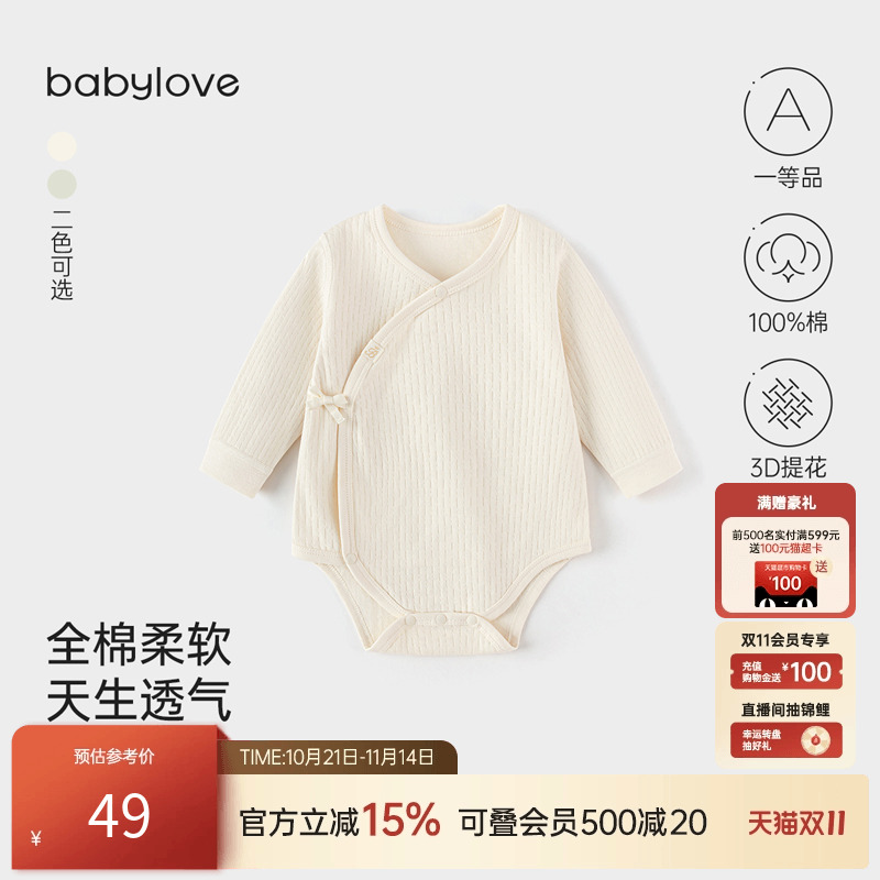 【清仓】babylove婴儿包屁衣春秋纯棉新生宝宝三角哈衣系带和