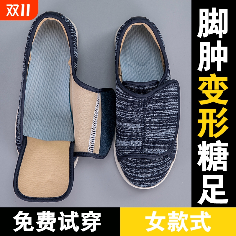 脚肿老人鞋春秋爸爸鞋加宽糖尿病脚拇指外翻专用鞋痛风偏瘫鞋网面