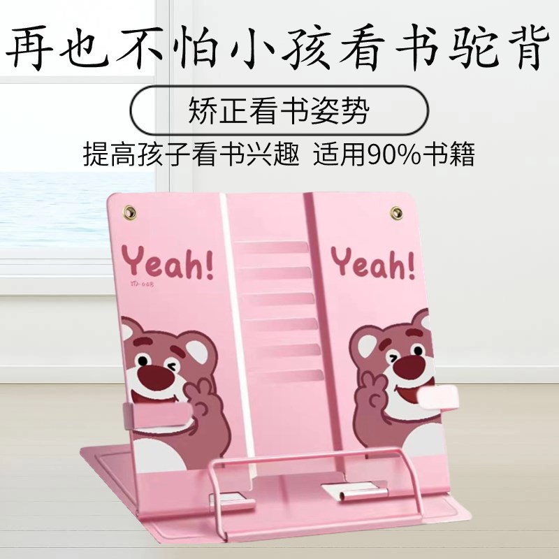 草莓熊阅读架可升j降桌面夹书器儿童读书架小学生看书支架看书神