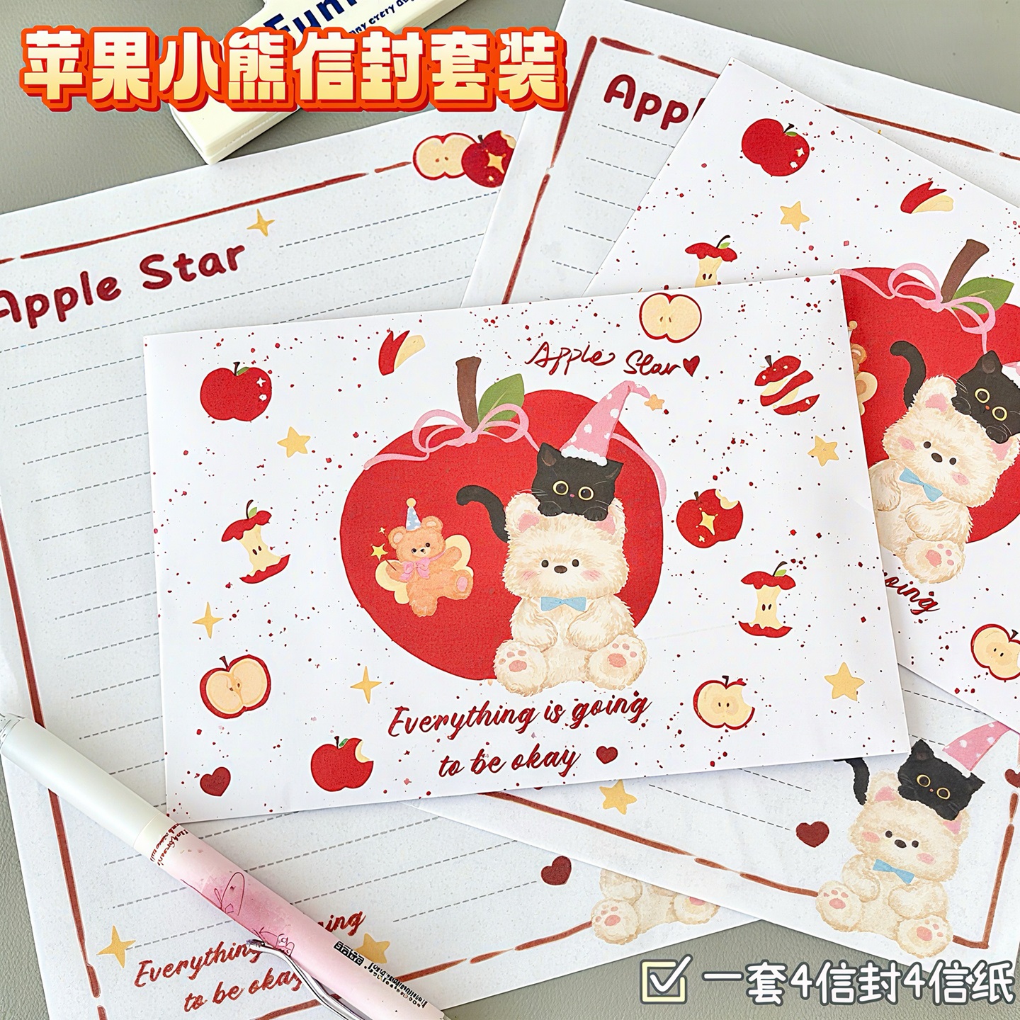 新款苹果小熊信封信纸套装可爱高颜值ins牛皮纸手写信情书送闺蜜