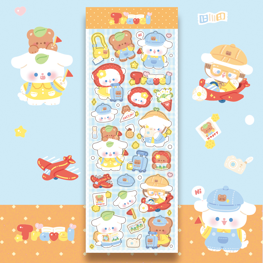 一起旅行 咕卡贴纸 闪膜 咕盘咕砖 流麻 新品 镭射不干胶