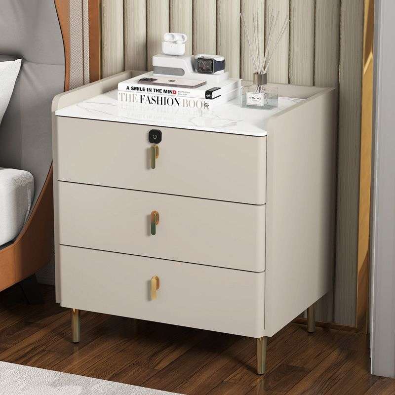 实木岩板意式三层床头柜卧室家用简约轻奢现代多功能床头边收纳柜