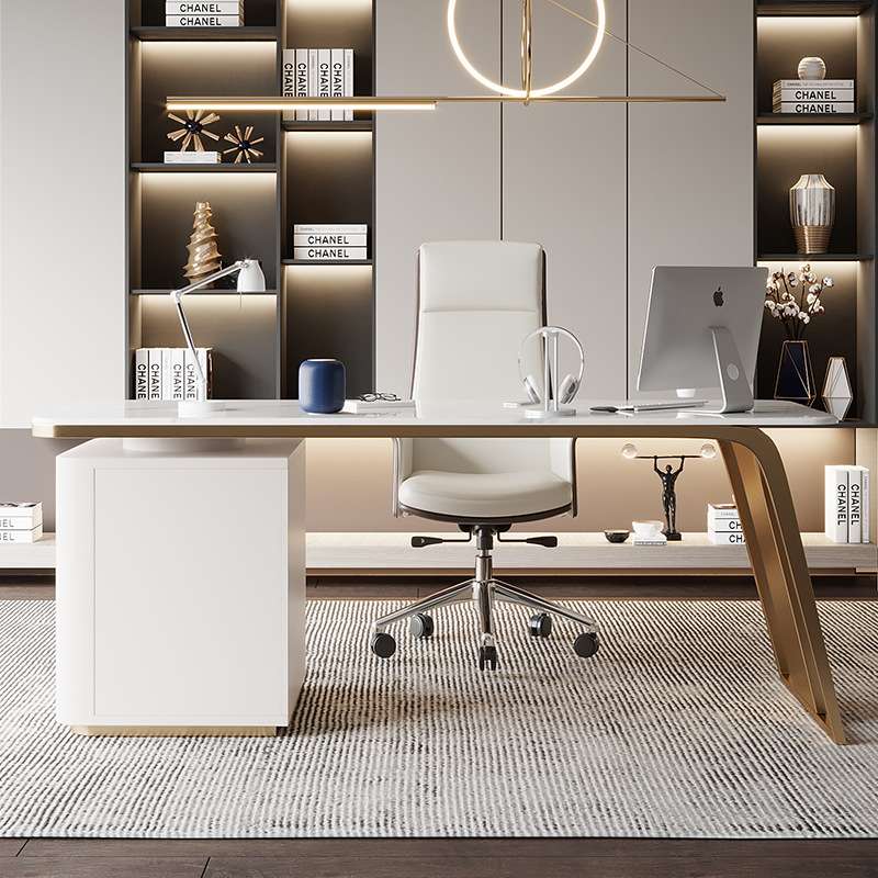 亮光岩板意式书桌轻奢现代书房电脑桌写字台简约风格设计师办公桌